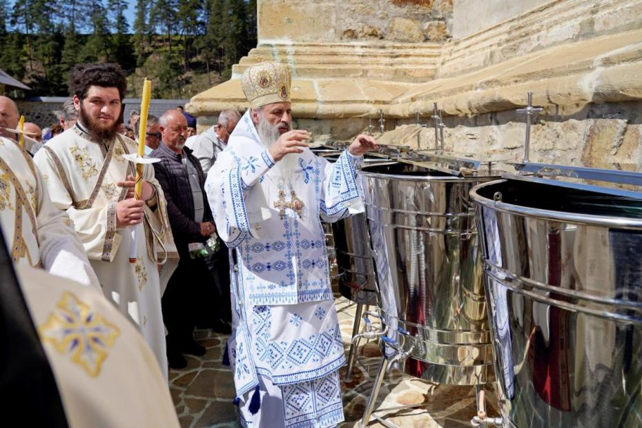 La finalul Liturghiei, părintele arhim. Luca Diaconu, stareţul așezământului monahal, a mulţumit Părintelui Mitropolit și tuturor celor prezenţi pentru rugăciune, după care a urmat slujba Aghiasmei mici, la finalul căreia credincioşii prezenţi au fost stropiți cu apă sfinţită. Totodată, credincioșii au mers în procesiune cu Icoana Sfintei Ana, înconjurând lăcașul de cult istoric.